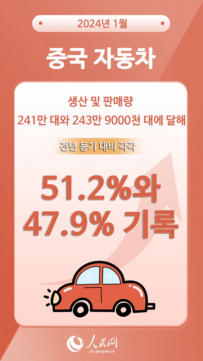 [??? ???? 2? 27?] ?????????(CAAM)? ??? ???? ???, 2024? 1? ?? ??? ?? ? ???? 241? ?? 243? 9000?? ??, ?? ?? ?? ?? 51.2%? 47.9%? ????. ???????(一汽·FAW), ??(東風(fēng)·DFL), ??(長安·CHANGAN), ???(比亞迪·BYD), ??(吉利·GEELY) ? ?? ?? ??? ??? ???? ???? ?? ???? ???? ??. (??: ???)