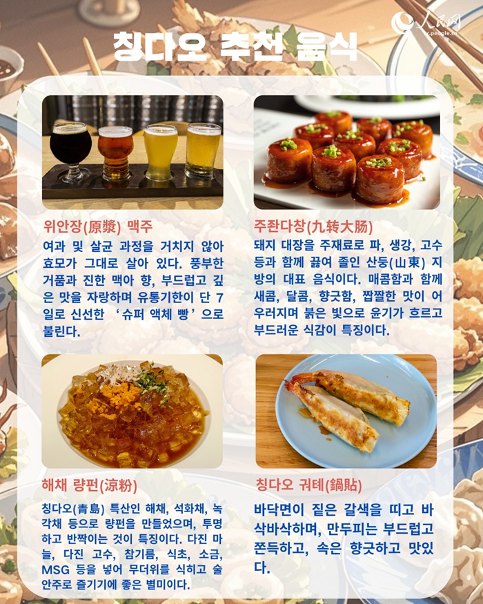 ?? ? ???? ???(嶗山)?? ?? ?? ? ?? ??? ??? ?? ??? ????, ???? ???(金沙灘) ???? ??? ?? ??? ??? ????. ???? ?? ?? ??????(鮁魚水餃), ??? ??? ?? ? ??? ??? ??? ???.