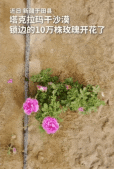 近日,塔克拉瑪干沙漠“鎖邊合龍”時(shí)種植的10萬(wàn)株玫瑰開(kāi)始綻放,為廣袤沙海帶來(lái)勃勃生機(jī)。